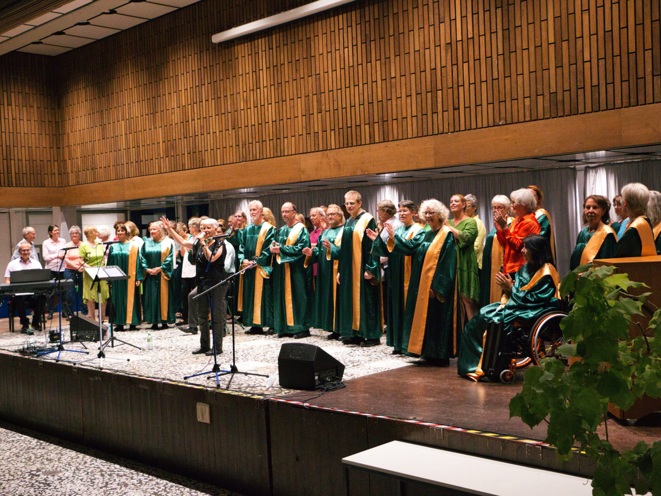 Wir sind ein rund 35-köpfiger Gospelchor, der seit dem Jahr 2000 mitreißende Modern Gospel Songs und afrikanische Stücke ohne Noten singt – mit viel Freude, Bewegung und Leidenschaft. Unsere Chorarbeit unter der Leitung einer engagierten Chorleiterin umfasst Stimm- und Gehörbildung, Rhythmus, Choreografie und regelmäßige Weiterentwicklung durch Proben, Chorfahrten und externe Coaches. Dabei steht für uns das emotionale Erleben der Musik im Vordergrund – mehr Freude als Ehrgeiz.
